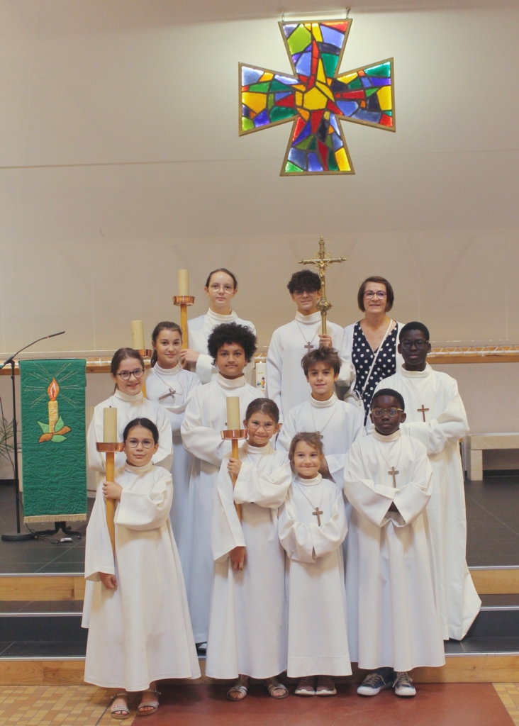 Les servants portent l’aube, ils assistent et aident le célébrant. Ils sont très apprécié par la communauté.